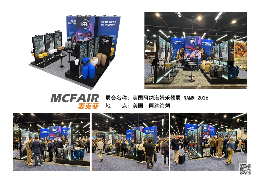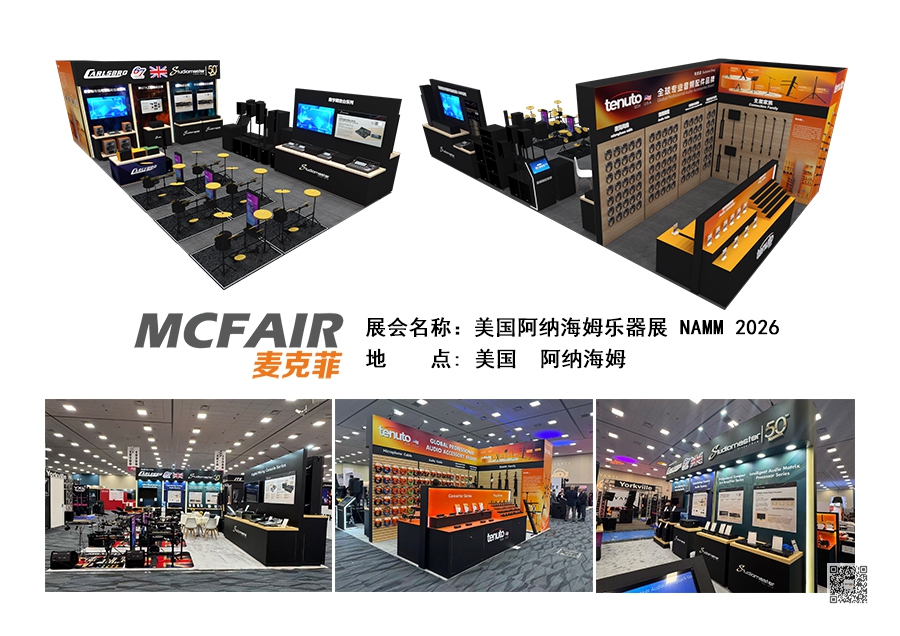 本届展会,麦克菲展览再次为多个展位提供了美国阿纳海姆乐器展(NAMM Show 2026)的展位搭建服务,现场如期完工,并交付客户使用。